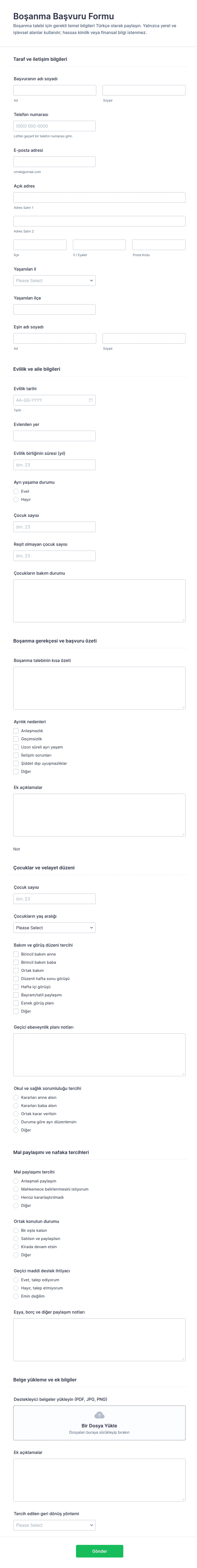 Bu adımları takip ederek, yasal süreçlerinizi kolaylaştıran, hataları azaltan ve müşterileriniz veya paydaşlarınız için profesyonel bir deneyim sunan bir Yasal Form Şablonu oluşturabilirsiniz.