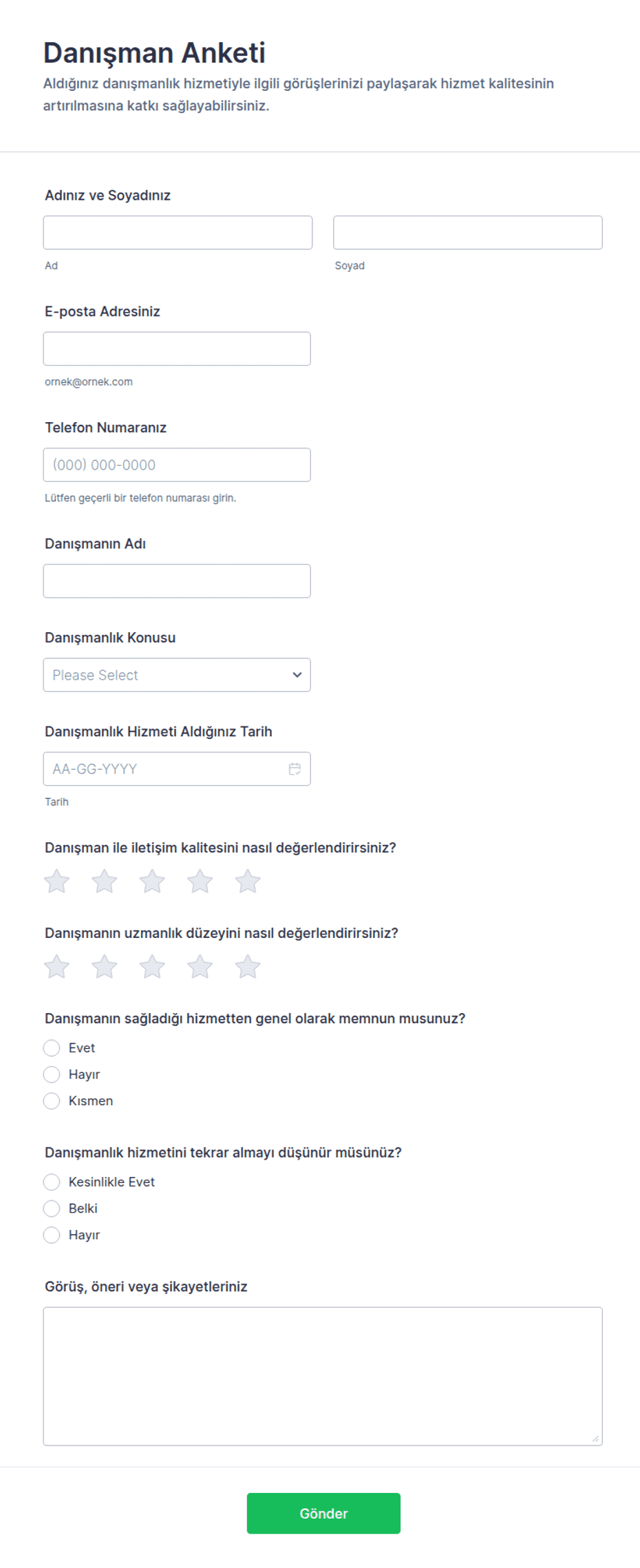 - Öğrenciler veya katılımcılar için kurs veya eğitim değerlendirme anketleri