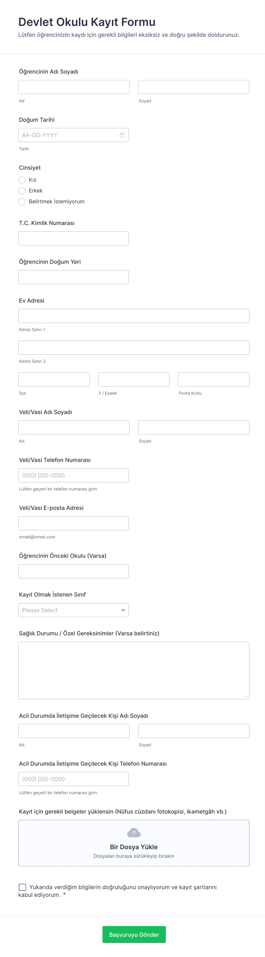 Devlet Okulu Kayıt Formu