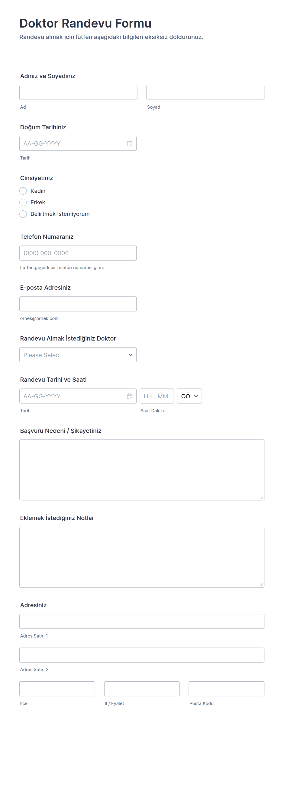 - Tıbbi Randevular: Sigorta bilgileri, ziyaret nedeni ve tıbbi geçmiş için alanlar gerektirebilir.