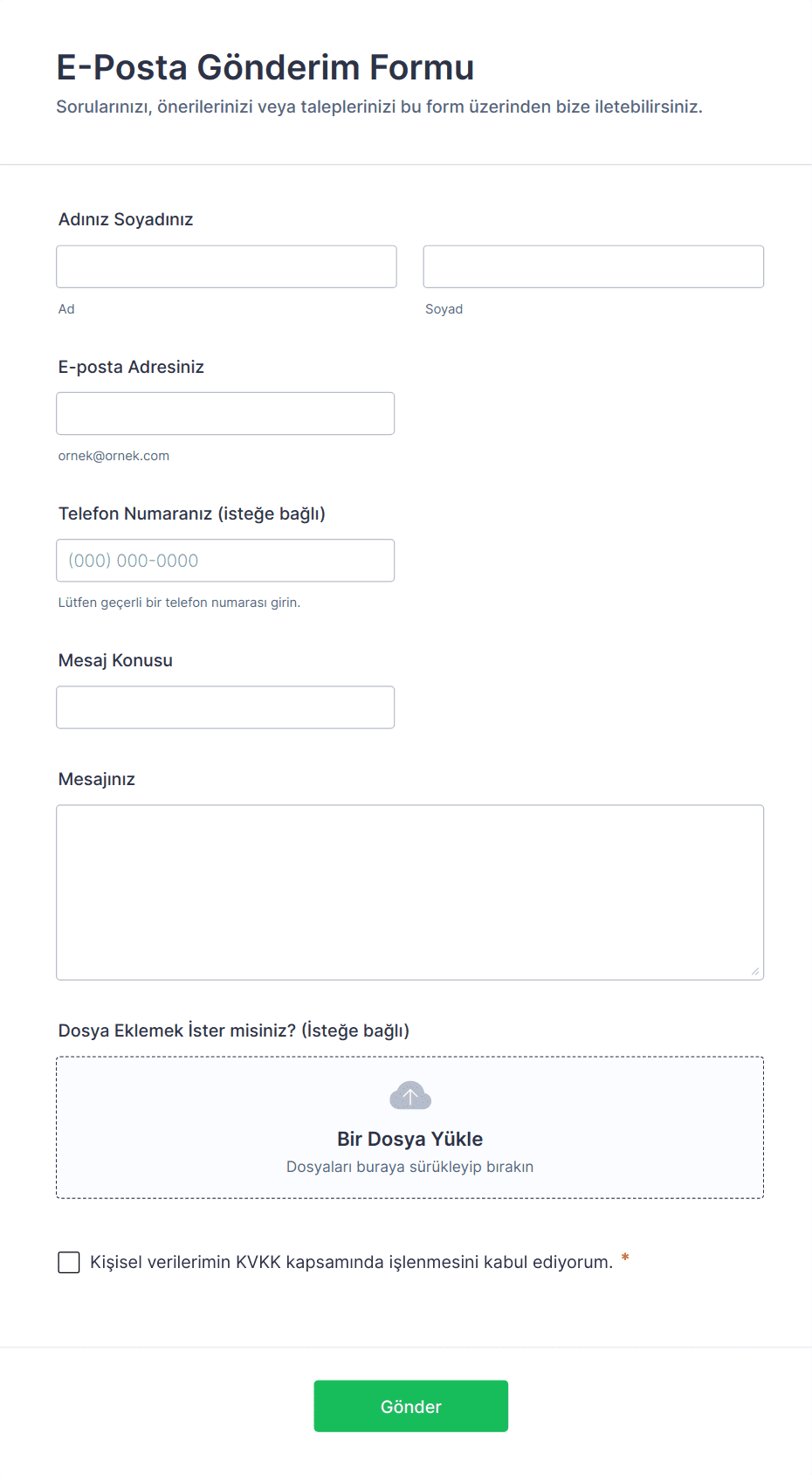 - Onay kutusu (GDPR veya CAN-SPAM uyumluluğu için)