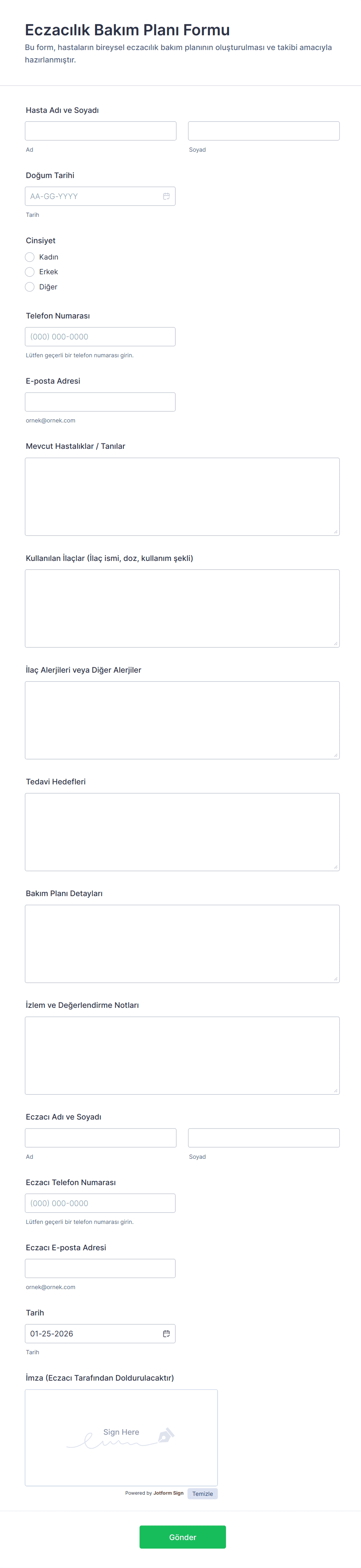 Eczane formu, eczanelerin reçete, hasta kabulü, ilaç siparişleri ve diğer eczane hizmetleriyle ilgili bilgileri toplamak, yönetmek ve işlemek için kullandığı dijital bir belgedir.
