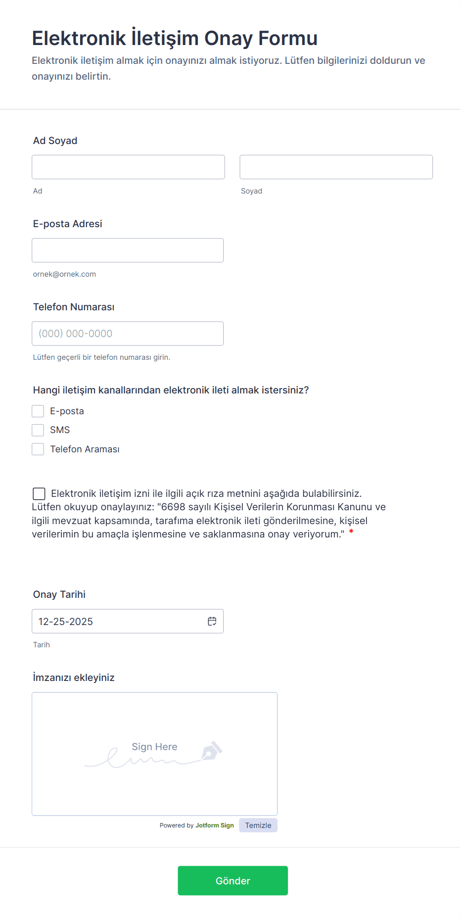 Kullanıcı yanıtlarına göre alanları göstermek veya gizlemek için koşullu mantık kullanın (örneğin, yanıtlayan 18 yaşın altındaysa ek onay seçeneklerini gösterin).