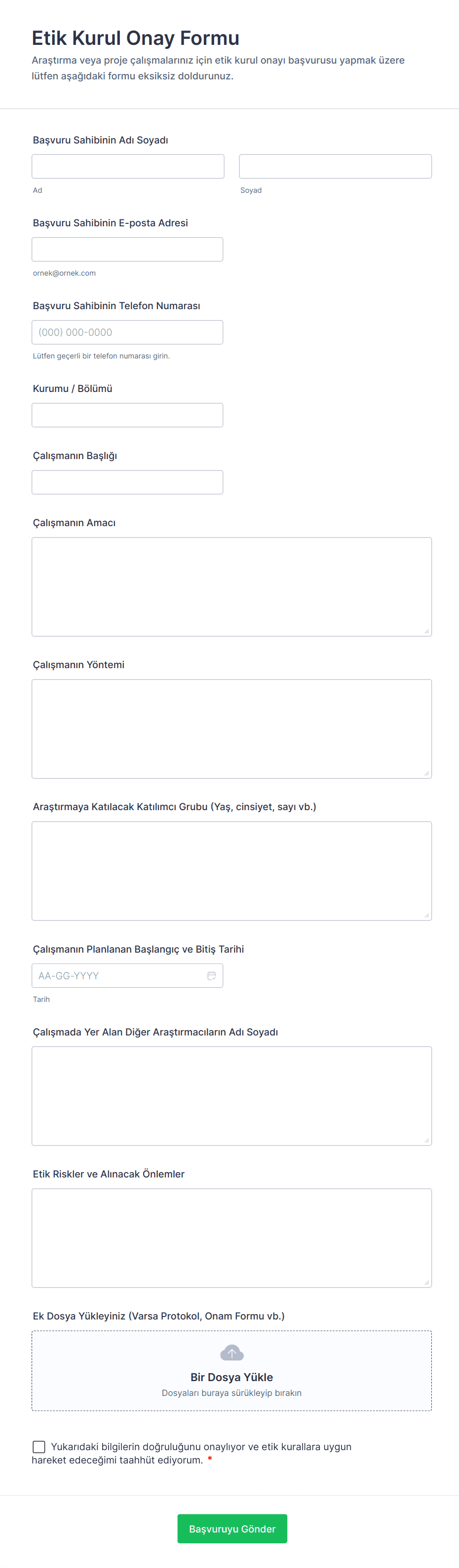 Onay form şablonu, bir kuruluş içinde taleplerin gönderilmesini, incelenmesini ve onaylanmasını kolaylaştıran önceden tasarlanmış bir online formdur. İş akışını standartlaştırır ve gerekli tüm bilgilerin toplanıp doğru kişilere iletilmesini sağlar.