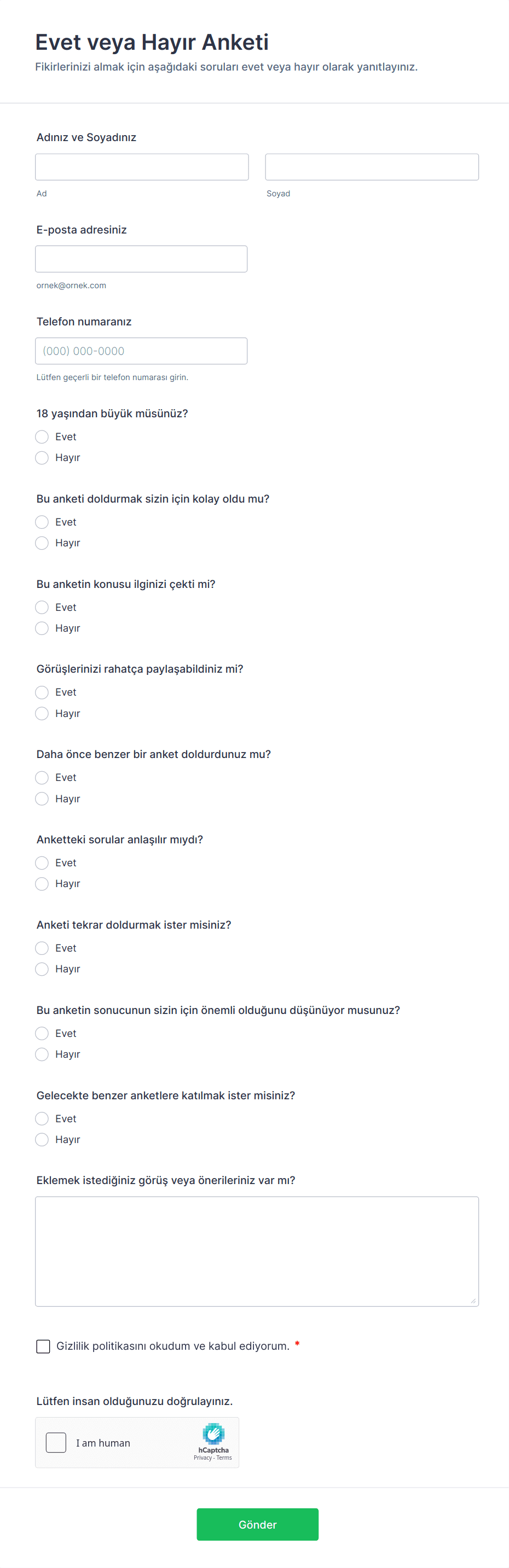 - Müşteri Memnuniyeti Anketleri: Ürünleri, hizmetleri veya deneyimleri iyileştirmek için geri bildirim toplayın.