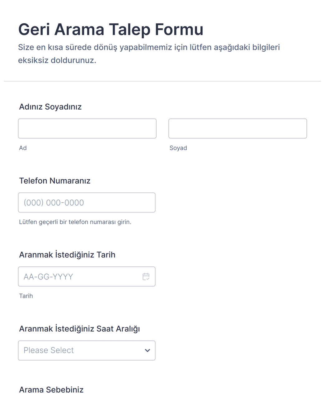 - SaaS veya B2B şirketleri için demo veya danışmanlık rezervasyon formları.