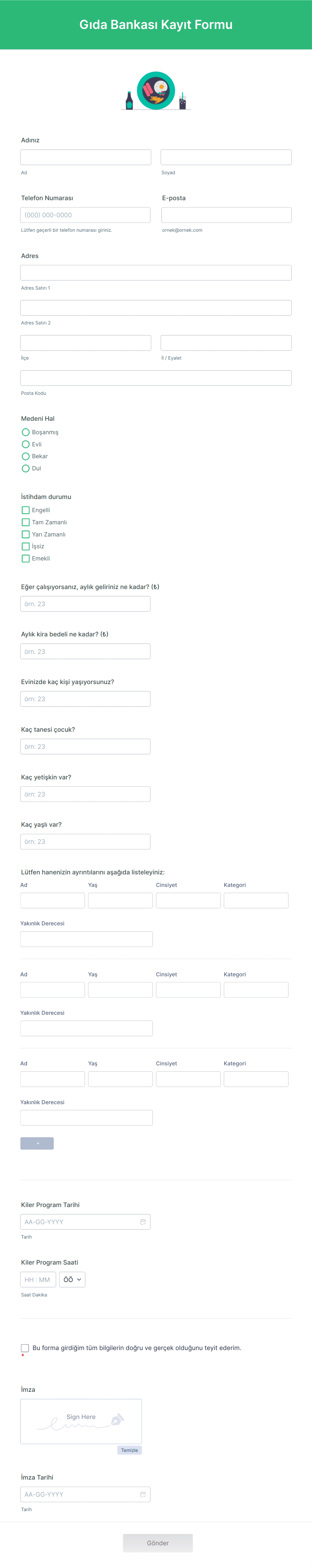 Evet, kayıt formları etkinlikler, kurslar, üyelikler, gönüllülük fırsatları, randevular ve daha fazlası için özel alanlar ve gereksinimlerle uyarlanabilir.