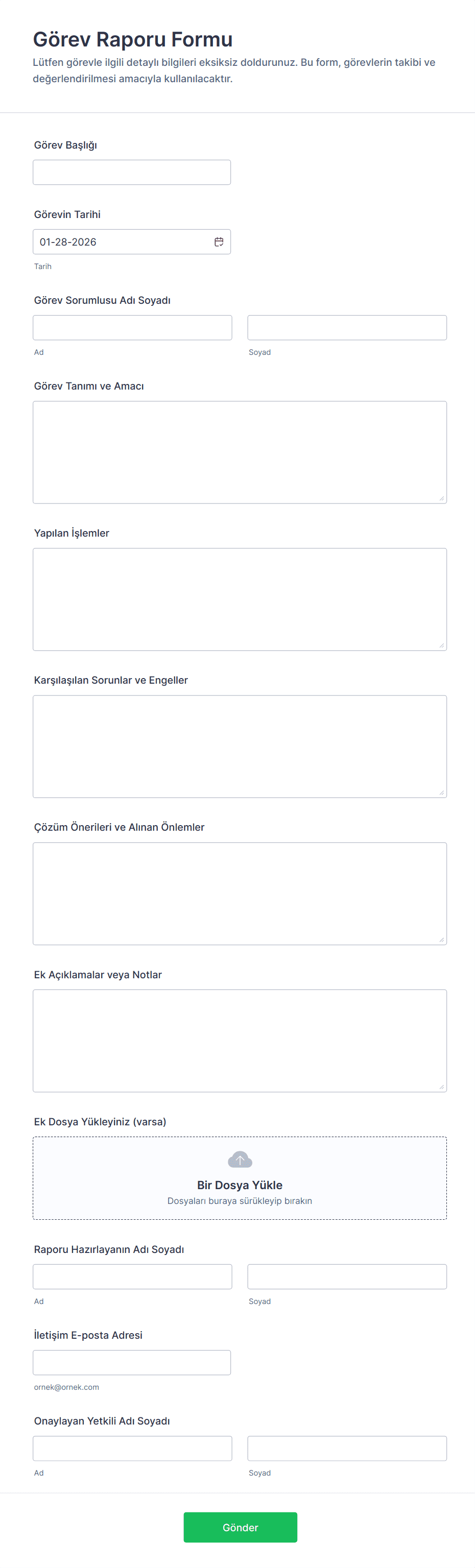 - İş raporları için: Tarihler, ölçekler, yorumlar ve dosya yüklemeleri için alanlar ekleyin.