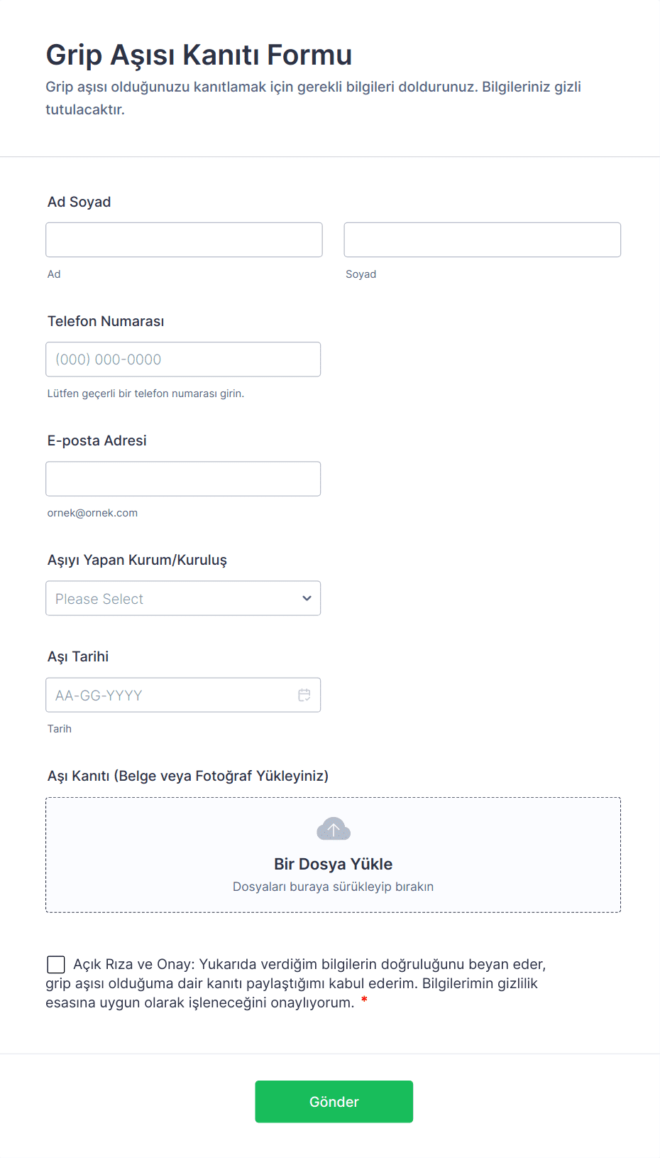 - Onay beyanları ve kabul onay kutuları