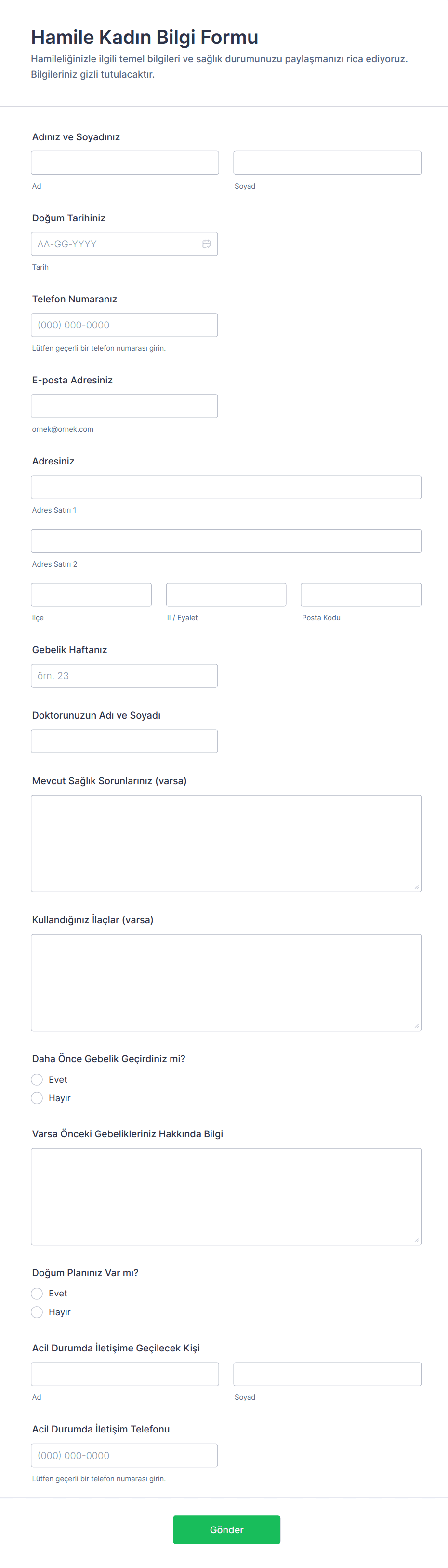 • Sağlık hizmet sağlayıcılarının tıbbi geçmiş ve sigorta bilgilerini toplaması için hasta kabul formu.