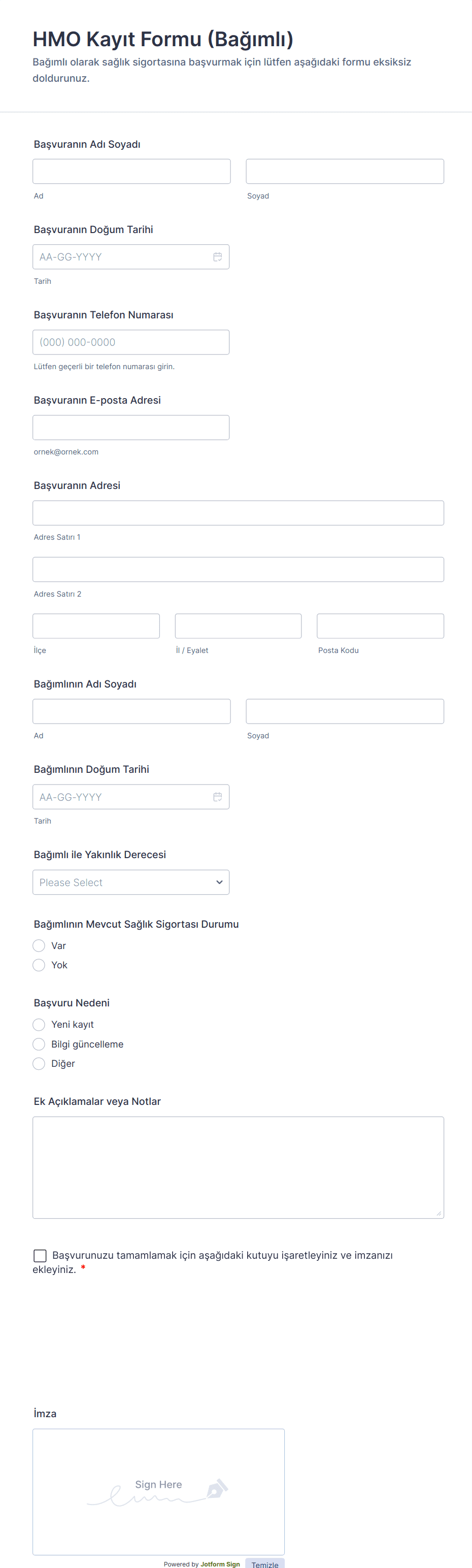 Jotform ile Çalışan Kayıt Formları oluşturmak ve yönetmek, kodlama gerektirmeyen sorunsuz bir deneyime dönüşüyor. Jotform'un kullanımı kolay sürükle-bırak Form Oluşturucu'su, İK profesyonellerinin ve yöneticilerin formları kurumlarının özel ihtiyaçlarına göre hızlıca özelleştirmelerine olanak tanır. Kullanıcılar, yan haklar için ödeme ağ geçidi entegrasyonları yapabilir, alanlar ekleyip düzenleyebilir ve hem İK hem de çalışanlar için otomatik bildirimler oluşturabilir. Tüm yanıtlar güvenli bir şekilde saklanır ve Jotform Tablolar'da kolayca erişilebilir durumdadır, bu da çalışan verilerini düzenlemeyi, aramayı ve yönetmeyi kolaylaştırır. Kuruluşlar, Jotform'un güçlü özelliklerinden yararlanarak verimliliği artırabilir, kağıt işlerini azaltabilir ve çalışanlarına sorunsuz bir kayıt deneyimi sunabilir.
