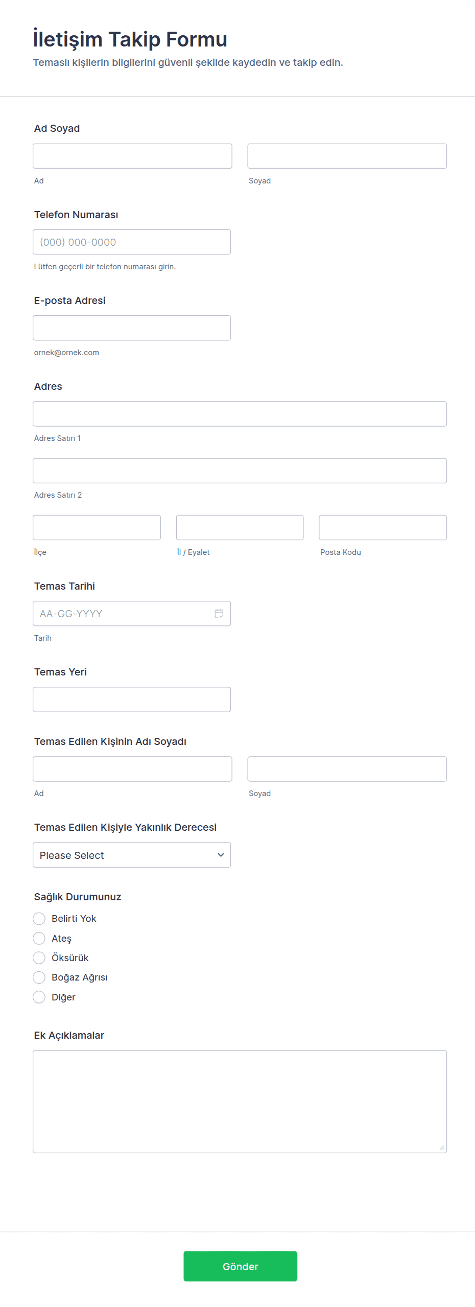 3. Bir takip formunda genellikle hangi bilgiler toplanır?