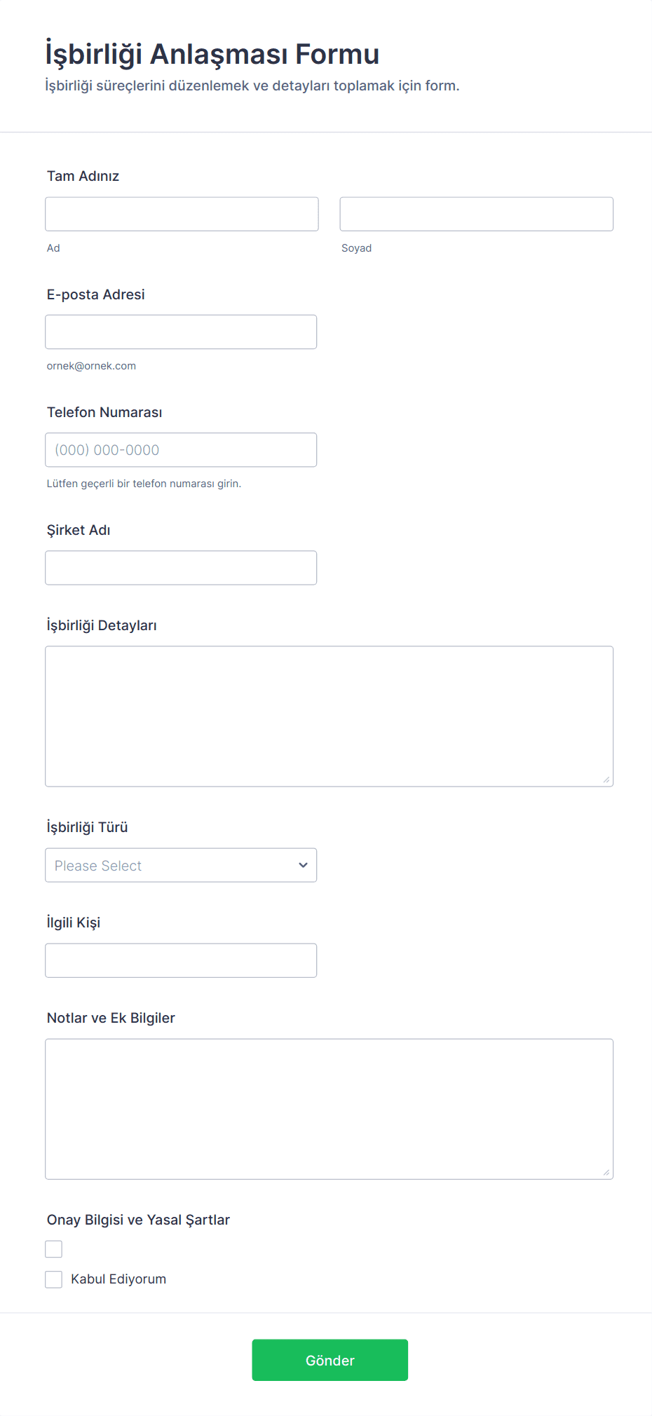 Talep formları, birinin bir şey talep etmesi gerektiğinde bilgi toplama ve düzenleme için gerekli araçlardır — bu bir hizmet, kaynak, onay veya destek olabilir. Bu formlar, ekipman talepleri, bakım talepleri, izin talepleri, BT desteği, satın alma siparişleri, tesis rezervasyonları ve daha fazlası gibi çeşitli senaryolarda taleplerin gönderilmesini ve yönetilmesini kolaylaştırır. Tüm gerekli bilgileri toplamak için standart bir yol sağlayarak, talep formları organizasyonların her talebin net, izlenebilir ve harekete geçirilebilir olmasını sağlamasına yardımcı olur, yanlış anlaşılmaları ve gecikmeleri azaltır.