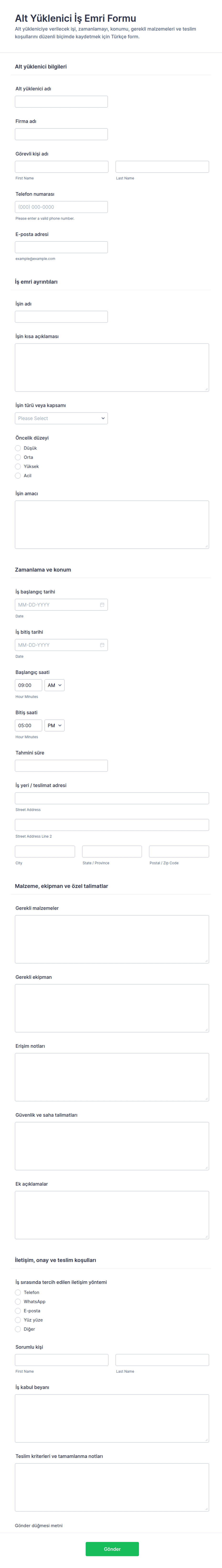 Taşeron Bilgi Formu, işletmelerin taşeron firma bilgilerini online veri toplama ile tek merkezde toplamasına ve form yanıtlarını düzenli şekilde takip etmesine yardımcı olur.