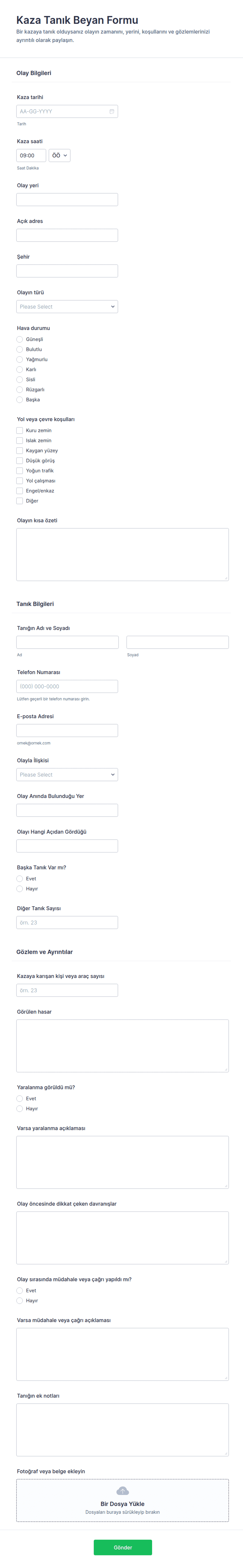Kaza Tanık Beyanı Formu