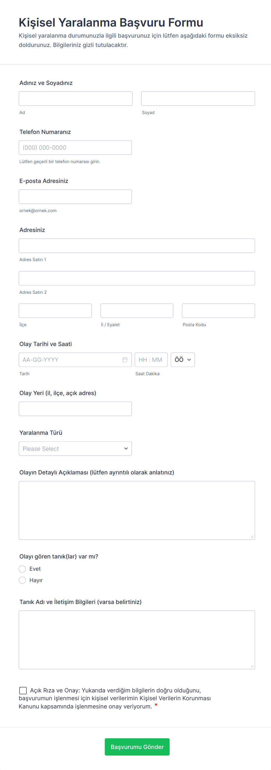 - İsim, iletişim bilgileri ve başvuru sahibi detayları