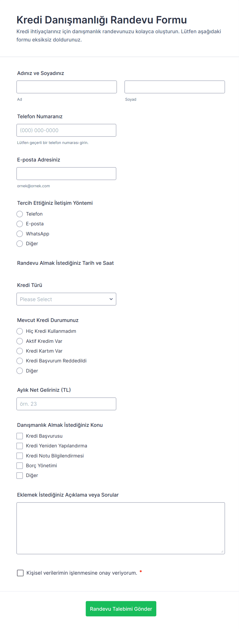 3. Finansal danışman formunda genellikle hangi bilgiler toplanır?