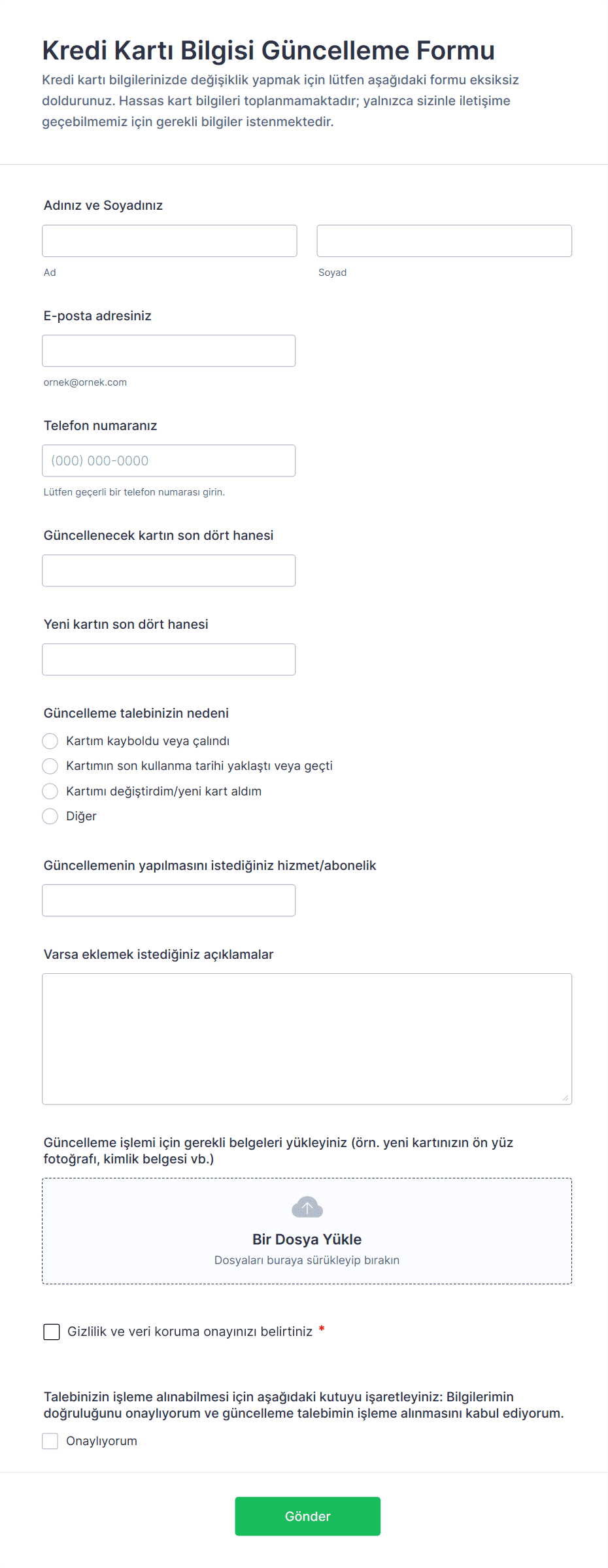 3. Bir ödeme formunda genel olarak hangi bilgiler toplanır?
