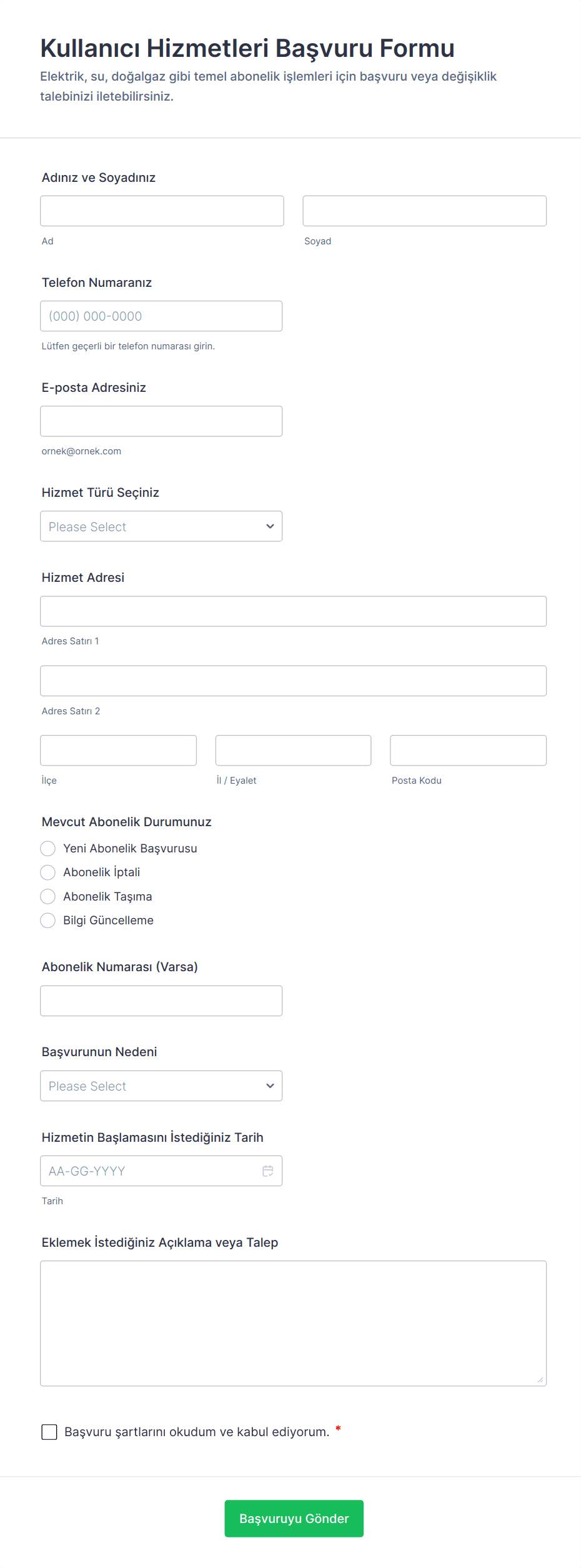 Müşteri hizmetleri formu, işletmelerin müşterilerden gelen soruları, geri bildirimleri, şikayetleri veya hizmet taleplerini yapılandırılmış ve düzenli bir şekilde toplamak için kullandığı online bir araçtır.