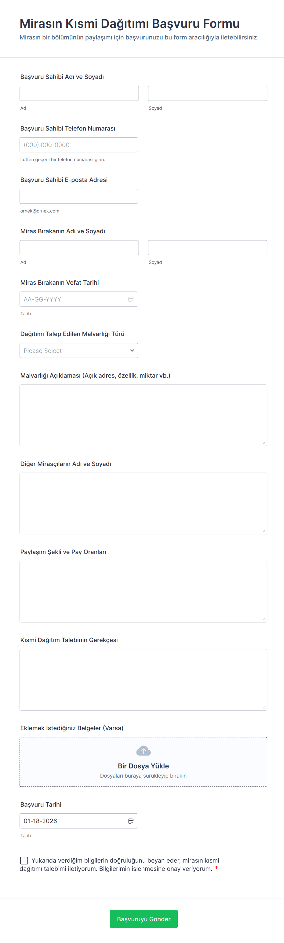 Bu adımları takip ederek, yasal süreçlerinizi kolaylaştıran, hataları azaltan ve müşterileriniz veya paydaşlarınız için profesyonel bir deneyim sunan bir Yasal Form Şablonu oluşturabilirsiniz.