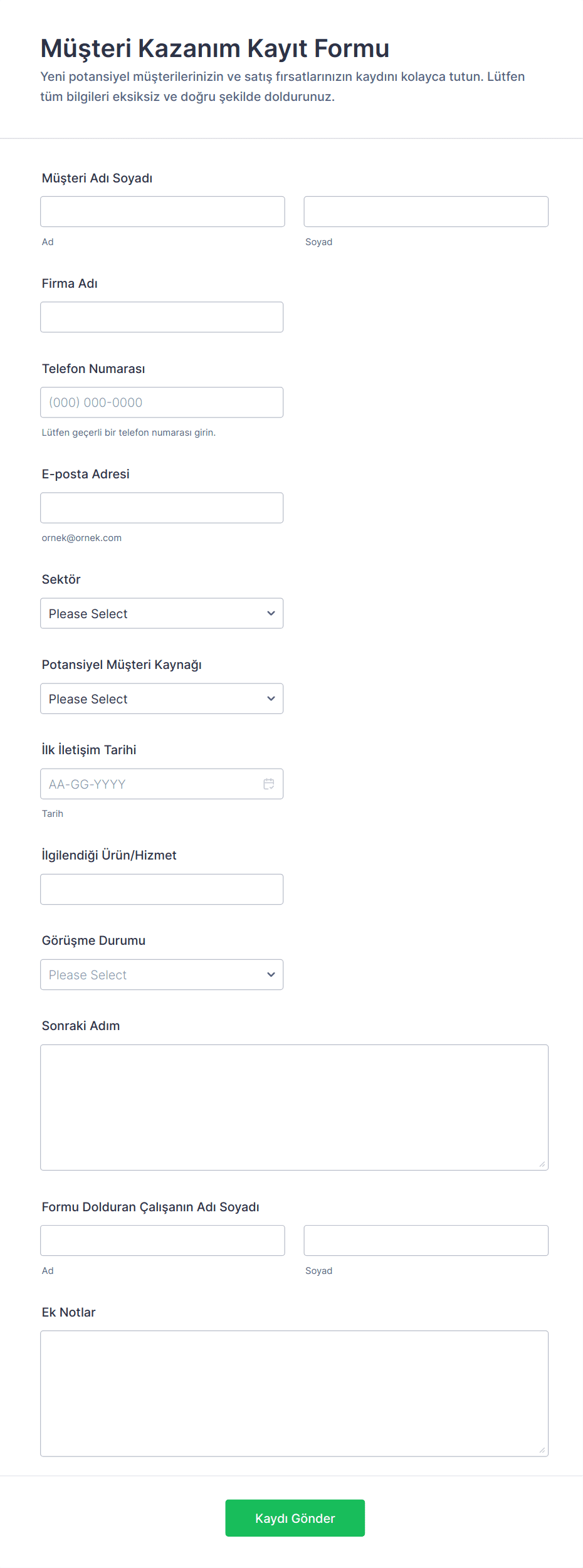Müşteri Kazanım Kayıt Formu