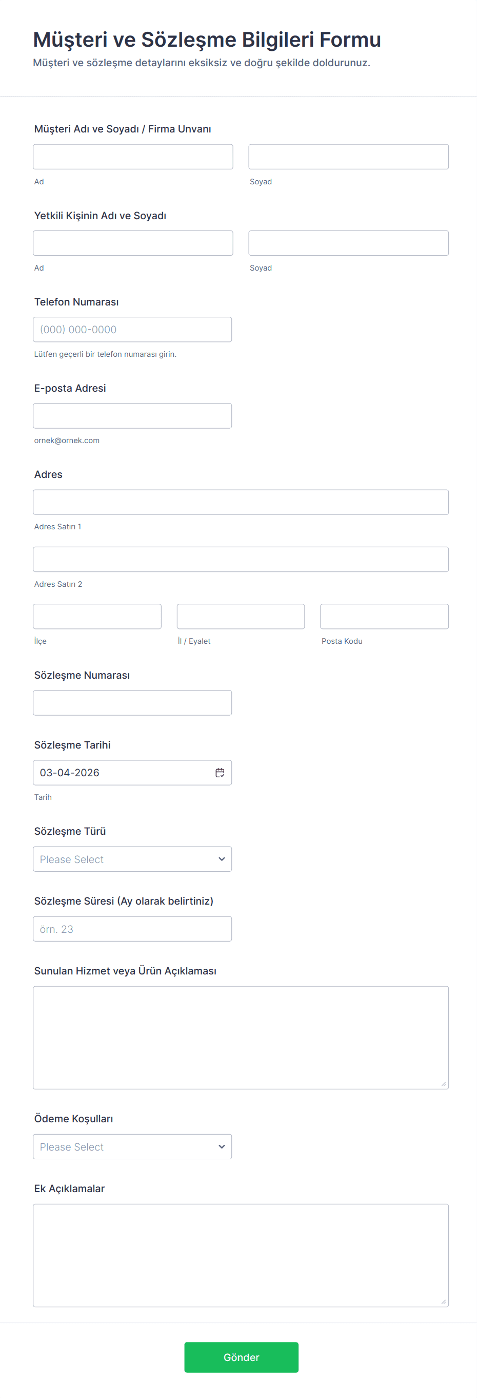 İş formu şablonu; müşteri kabulü, çalışan işe alımı veya sipariş işleme gibi çeşitli iş operasyonları için bilgi toplamak, işlemek ve yönetmek amacıyla kullanılan önceden tasarlanmış dijital bir formdur.