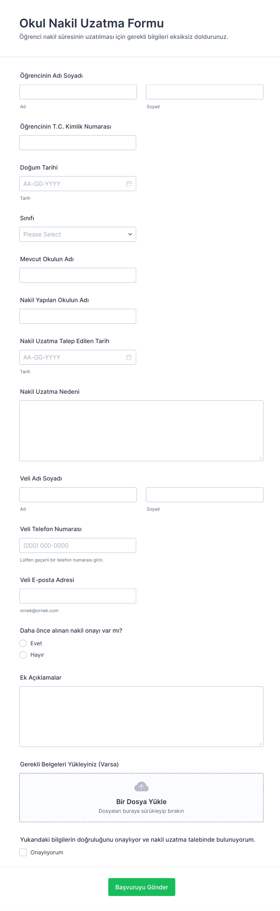 Kullanım durumunuza göre alanları özelleştirin. Örneğin, akademik formlar ders kodlarına ihtiyaç duyarken, kira sözleşmesi uzatmaları mülk detaylarını gerektirir.