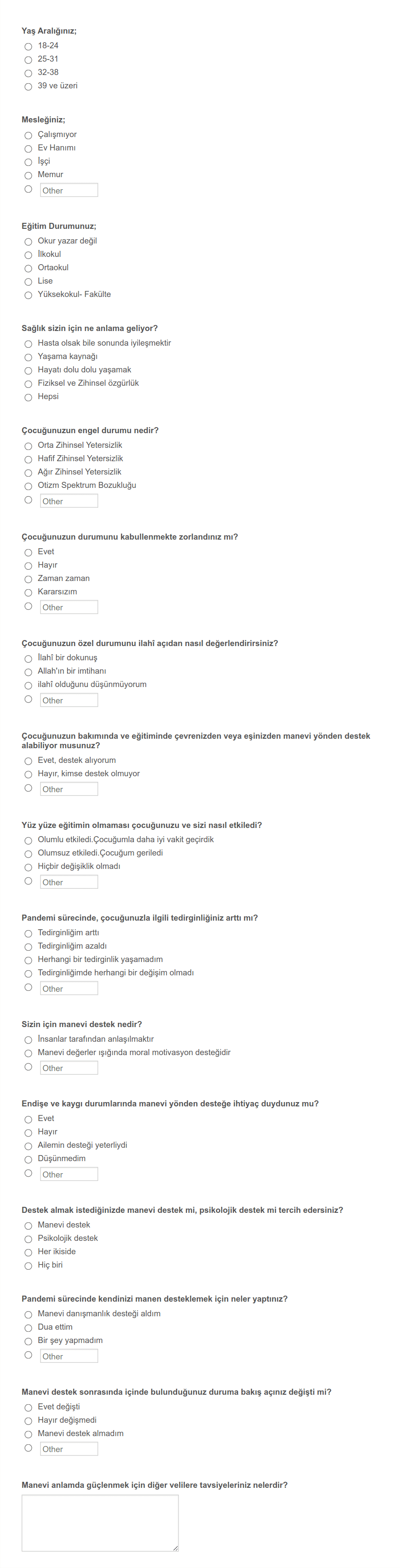 Öğrencilerin evde kaldıkları süreç içerisinde psikolojik durumları, evdeki fiziksel koşulları, uzaktan eğitim hakkındaki düşüncelerini öğrenmeye yarayan anket formu.