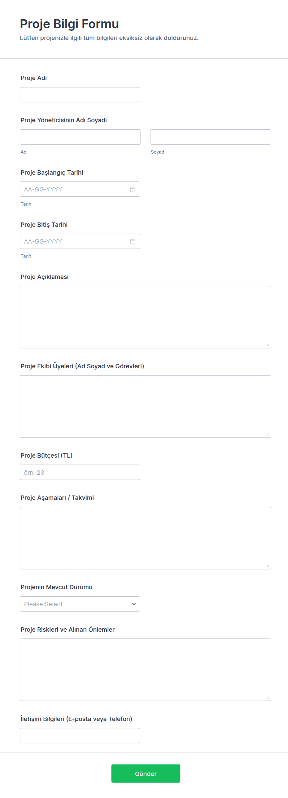 Bu adımları takip ederek, özel ihtiyaçlarınıza uygun, profesyonel, verimli ve kullanımı kolay bir Bilgi Form Şablonu oluşturabilir, her türlü senaryo için sorunsuz veri toplama ve yönetimi sağlayabilirsiniz.