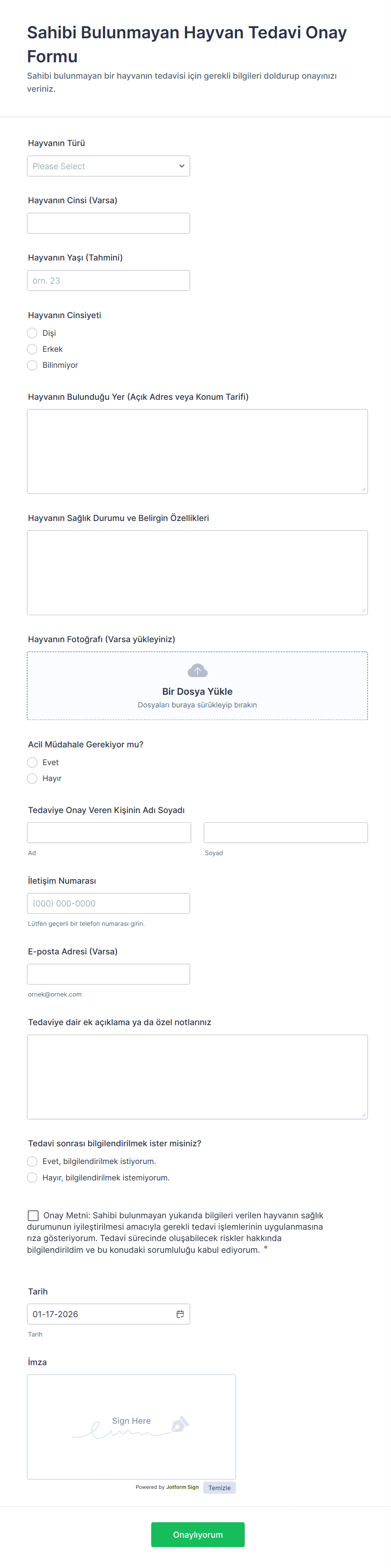 Jotform ile onay formları oluşturmak ve yönetmek sorunsuz bir süreç haline gelir. Jotform'un kodlama gerektirmeyen Form Oluşturucu'su, kullanıcıların hasta kabulü, ebeveyn izinleri veya veri işleme sözleşmeleri gibi özel ihtiyaçlarına yönelik onay formlarını hızlıca tasarlamalarına olanak tanır. Sürükle-bırak arayüzü, özelleştirilebilir şablonlar ve güvenli depolama ve bildirim sistemleriyle entegrasyon, onay yanıtlarını toplamayı, düzenlemeyi ve erişmeyi kolaylaştırır. Kullanıcılar, Jotform'un gelişmiş özelliklerini kullanarak uyumluluğu sağlayabilir, iş akışlarını düzenleyebilir ve hem kuruluşlar hem de yanıtlayanlar için profesyonel bir deneyim sunabilir.