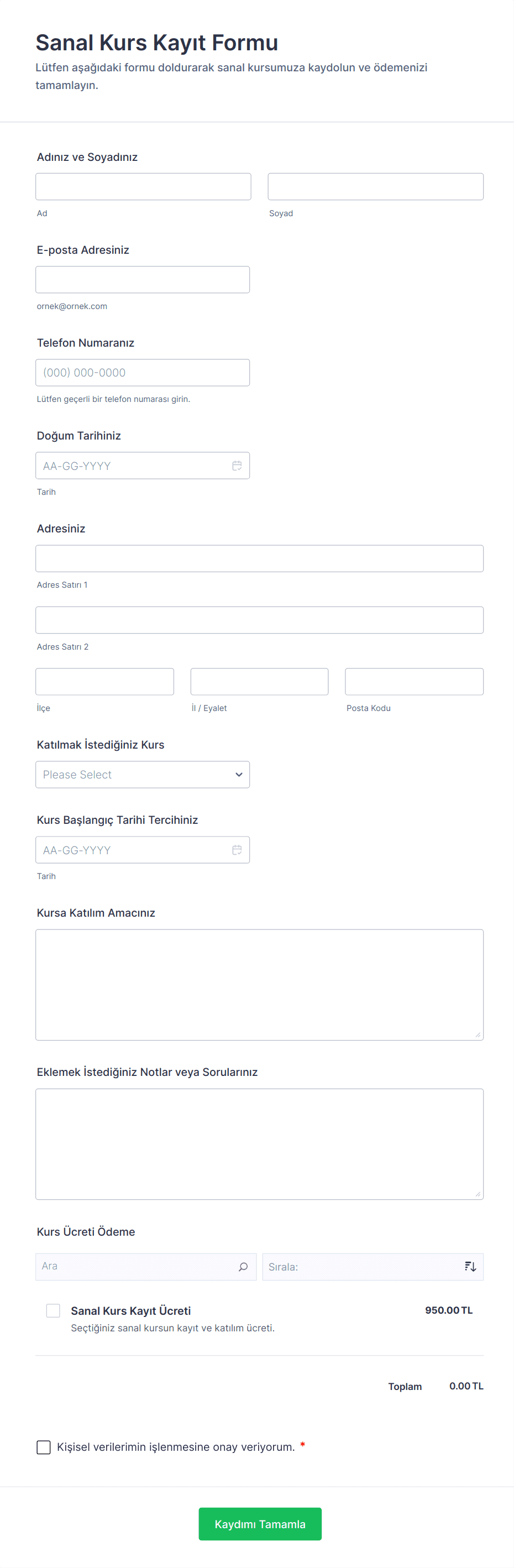 Kurs Kayıt Formu