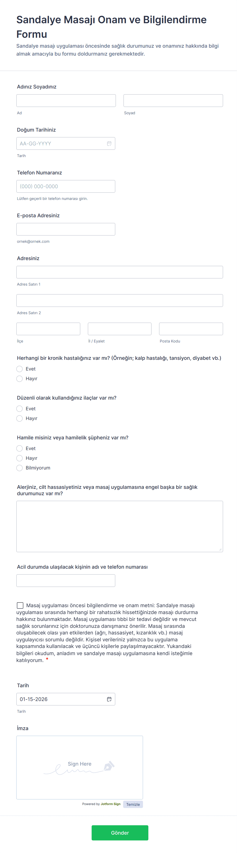 - Tıbbi onam formları, detaylı risk açıklamaları, acil durum iletişim alanları ve HIPAA uyumluluk beyanları gerektirebilir.