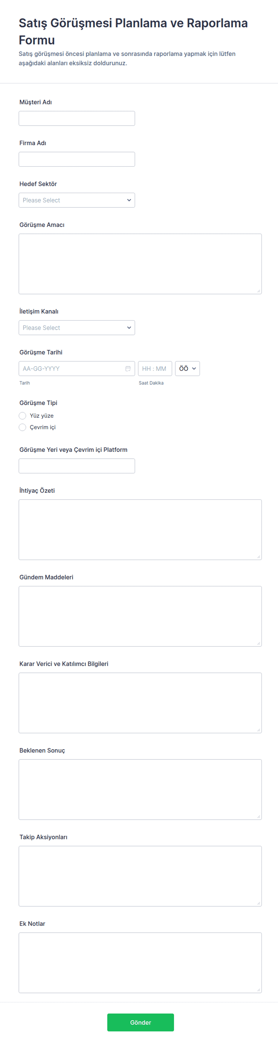 - Alanları mantıksal olarak düzenleyerek netlik ve kullanım kolaylığı sağlayın.