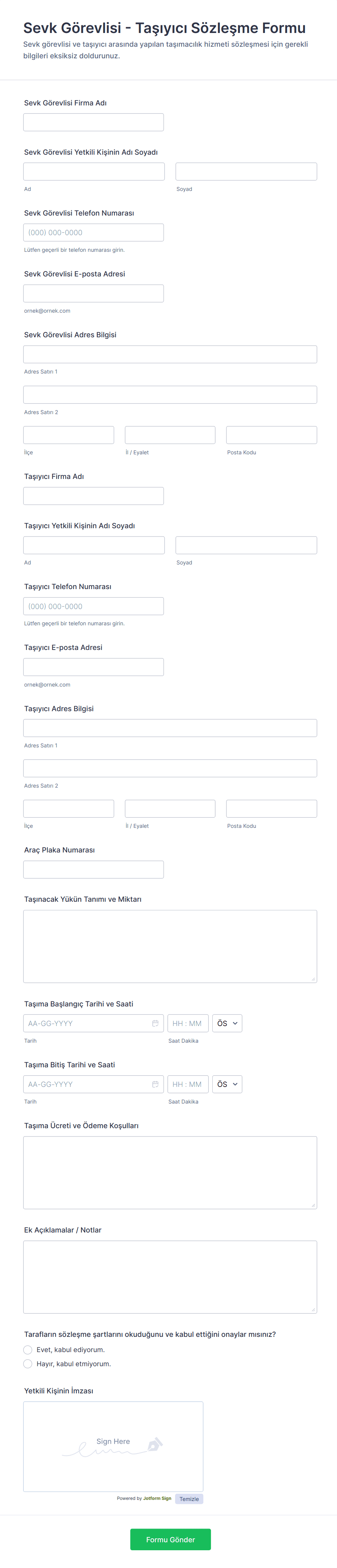 Ulaşım Talep Formları, ulaşım hizmetlerini talep etme, planlama ve yönetme sürecini kolaylaştırmak için tasarlanmış dijital belgelerdir. Bu formlar, kurumlar, okullar, etkinlik organizatörleri, lojistik şirketleri ve bireyler tarafından araç kullanımını koordine etmek, inme ve binme düzenlemelerini yapmak veya özel ulaşım taleplerini iletmek için yaygın olarak kullanılır. Yaygın kullanım alanları arasında çalışan servis talepleri, öğrenci gezi ulaşımı, medikal ulaşım planlaması, teslimat hizmeti koordinasyonu ve etkinlik misafir transferleri yer alır. Bu formlar, ulaşım taleplerini merkezi bir sistemde toplayarak yolcu bilgileri, inme ve binme noktaları, tarihler, saatler ve özel gereksinimler gibi tüm gerekli detayların doğru bir şekilde kaydedilmesini ve iletilmesini sağlar.