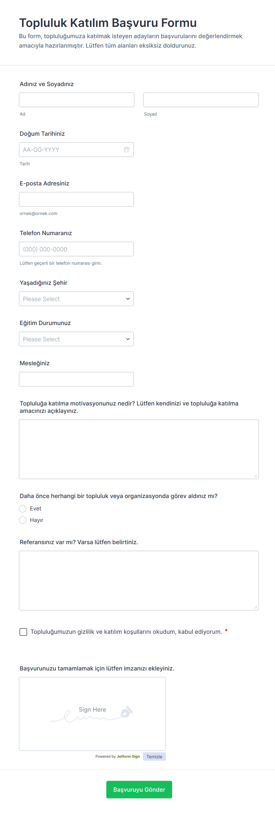 Kulüp/topluluklarınız için başvuru toplama formu. Kendi topluluğunuza göre özelleştirebilirsiniz.
