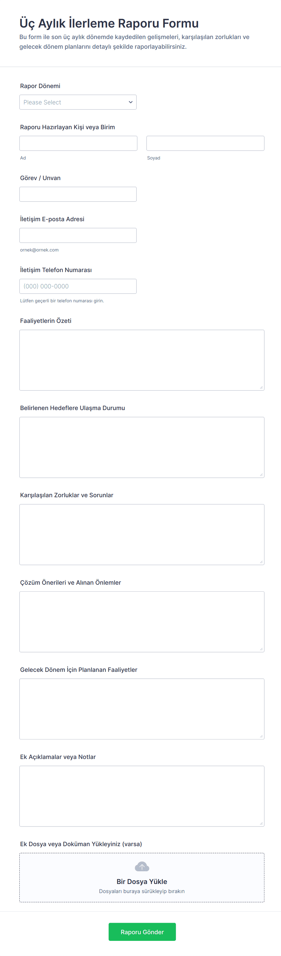 Üç Aylık İlerleme Raporu Formu