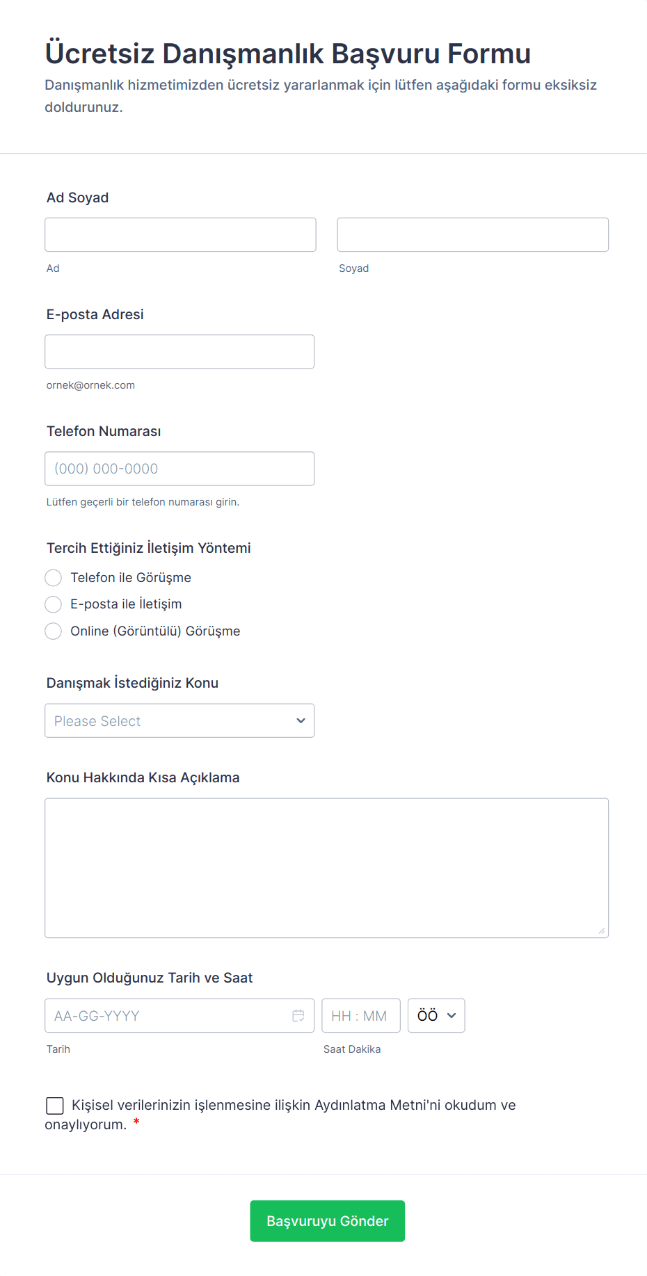 - Müşteri Kabul Formları: Seanslara başlamadan önce geçmiş bilgileri, beklentileri ve onayı toplayın.