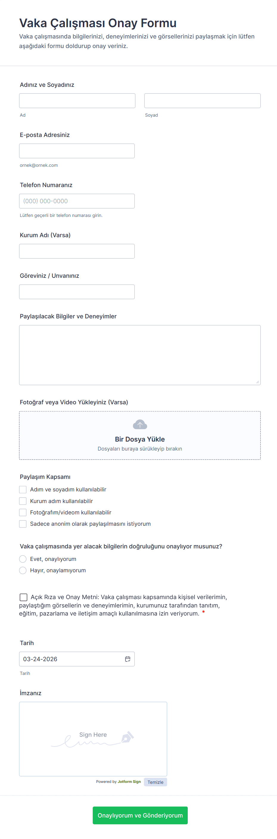 Onay formları; kişisel veri toplama, tıbbi işlemler, araştırma katılımı, fotoğraf çekimi veya diğer hassas faaliyetlere başlamadan önce kişilerden açık izin almak için kullanılan önemli belgelerdir. Bu formlar, katılımcıların neyi kabul ettikleri konusunda tam olarak bilgilendirilmelerini ve haklarının korunmasını sağlayan yasal ve etik bir güvence görevi görür. Onay formları; GDPR veya HIPAA gibi düzenlemelere uyumun ve şeffaflığın kritik önem taşıdığı sağlık hizmetleri, eğitim, araştırma, etkinlik yönetimi ve iş ortamlarında yaygın olarak kullanılmaktadır.