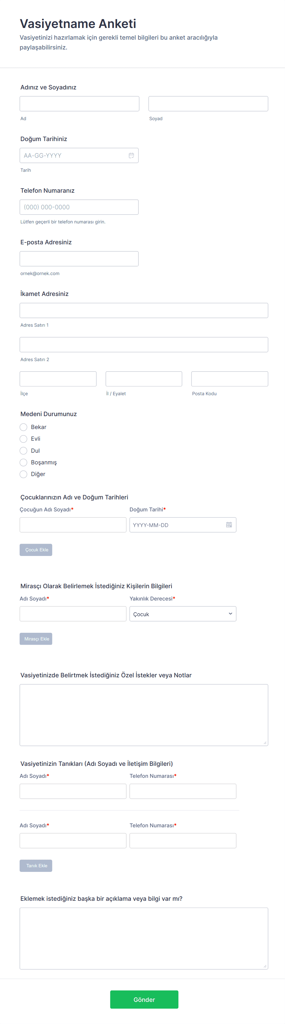 Bu adımları takip ederek, yasal süreçlerinizi kolaylaştıran, hataları azaltan ve müşterileriniz veya paydaşlarınız için profesyonel bir deneyim sunan bir Yasal Form Şablonu oluşturabilirsiniz.
