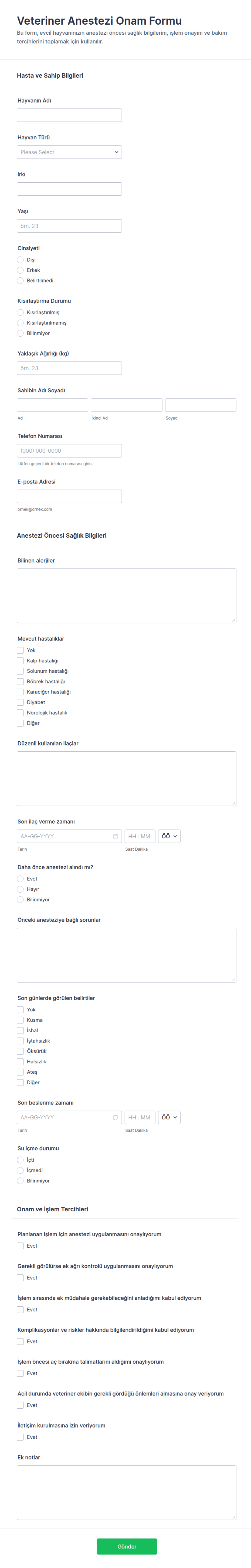 • Tıbbi onam formları, prosedürler, riskler ve acil durum iletişim bilgileri hakkında detaylı bilgi gerektirebilir.