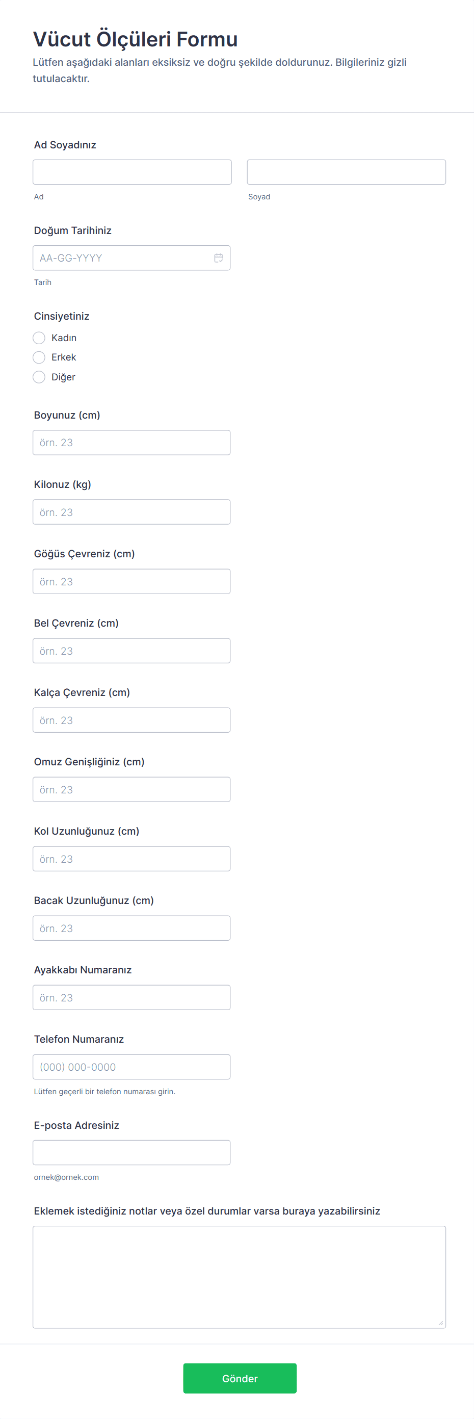 - Takım Forması Siparişleri: Spor takımları için oyuncu bilgilerini, beden ölçülerini ve özelleştirme detaylarını toplayın.