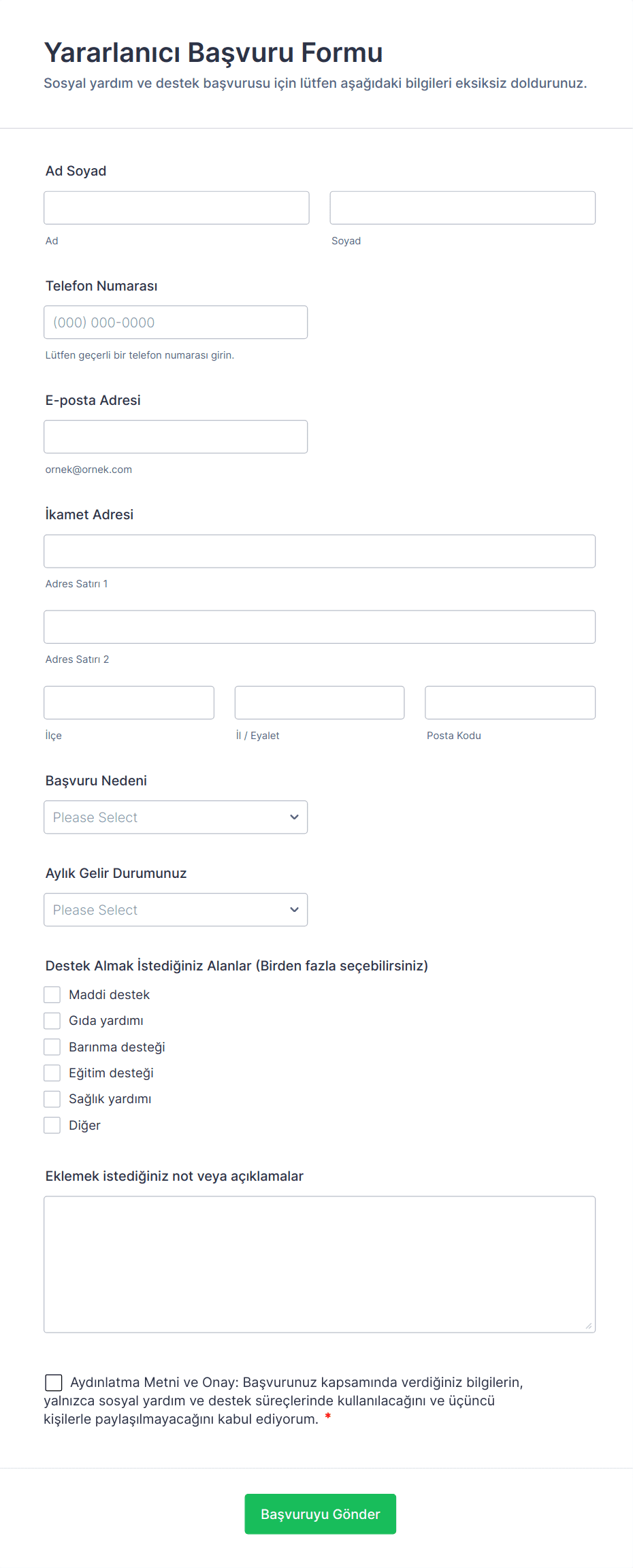 3. Bir başvuru formunda genellikle hangi bilgiler toplanır?