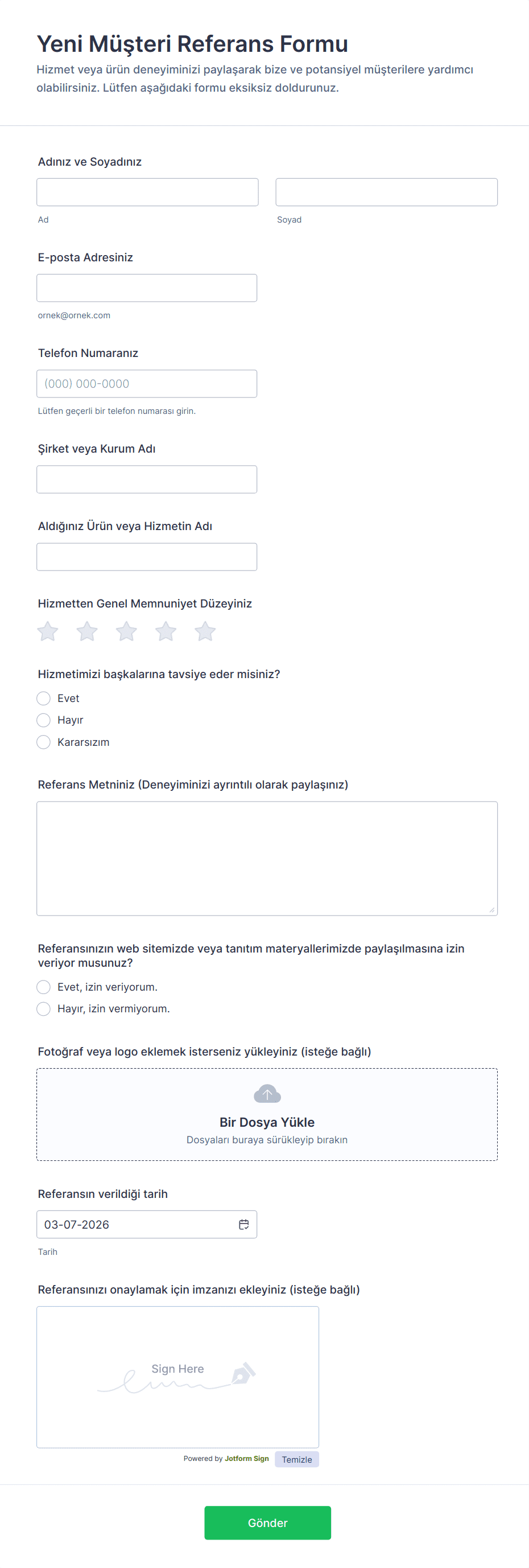 Aday adı, başvurulan rol veya program ve referans verenin adı, unvanı ve adayla ilişkisi için alanlar ekleyin.
