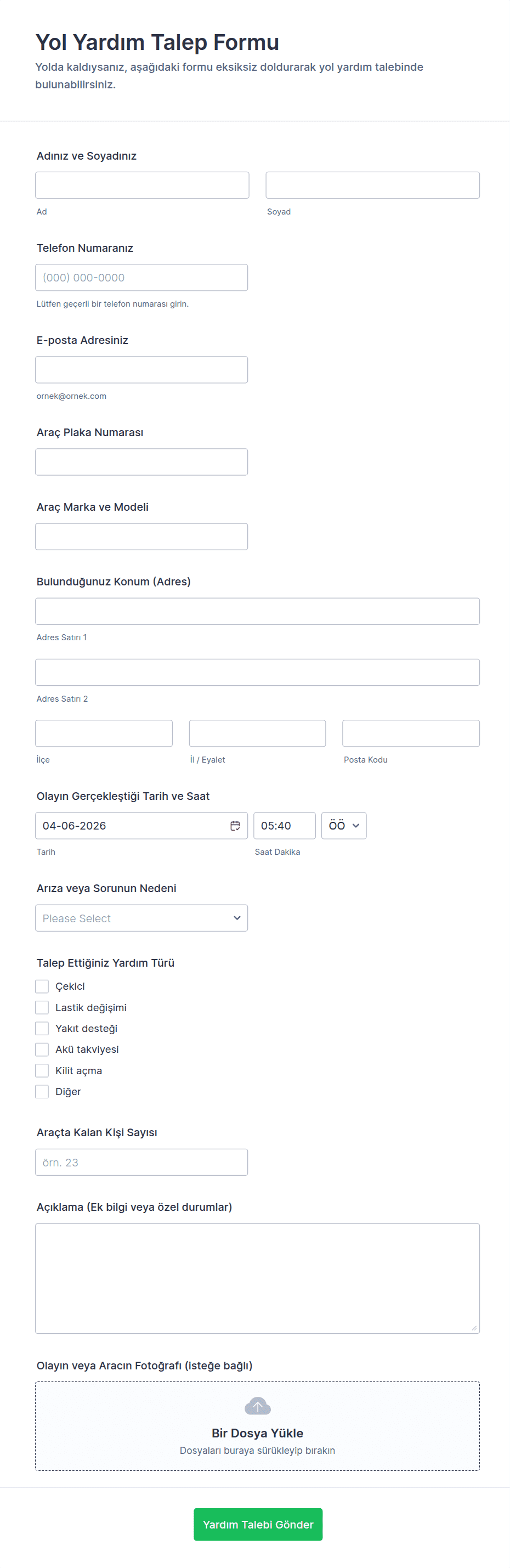 3. Otomotiv formunda genellikle hangi bilgiler toplanır?