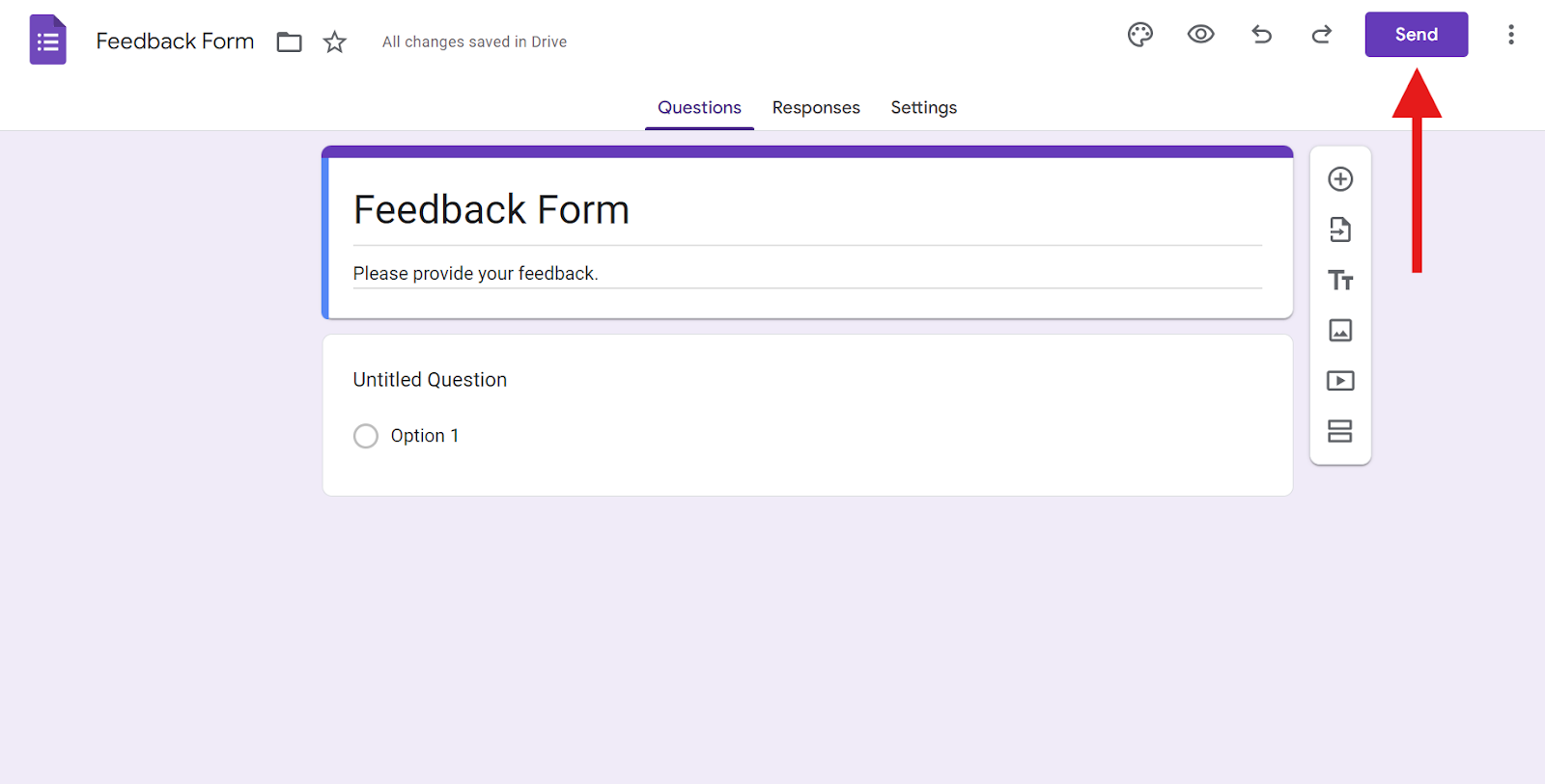 - Formunuzu paylaşmak için, sağ üst köşedeki Send butonuna tıklayın. Formunuzu e-posta ile gönderebilir, bağlantısını kopyalayabilir, web sitenize yerleştirebilir ya da sosyal medyada paylaşabilirsiniz.