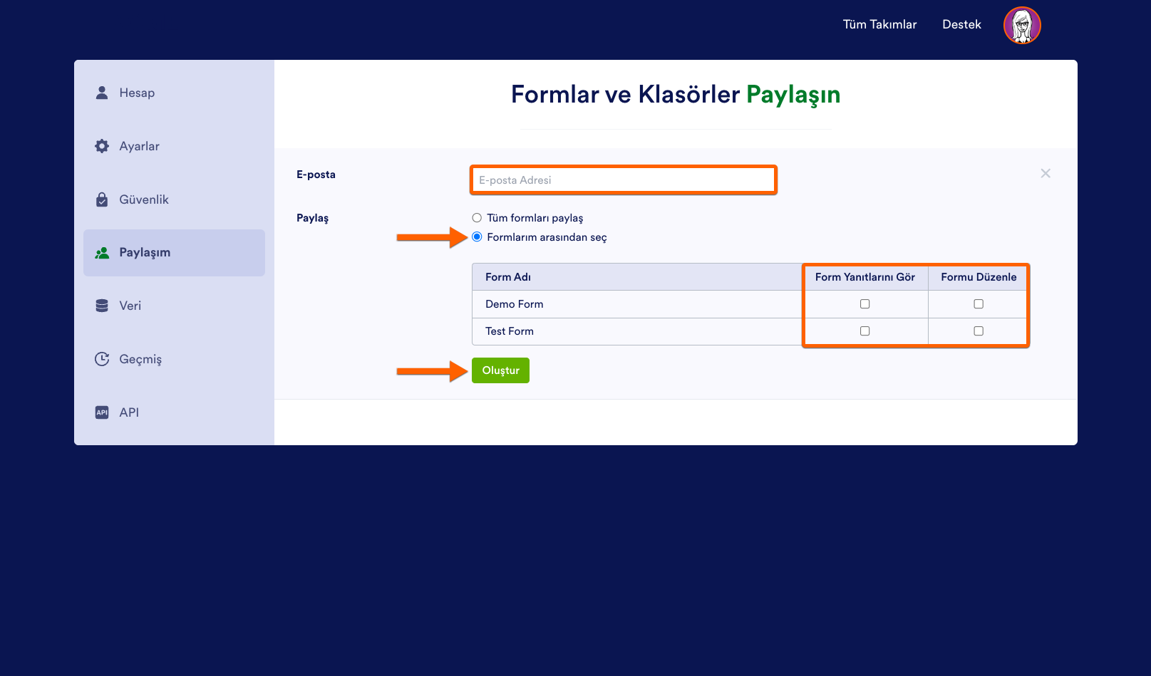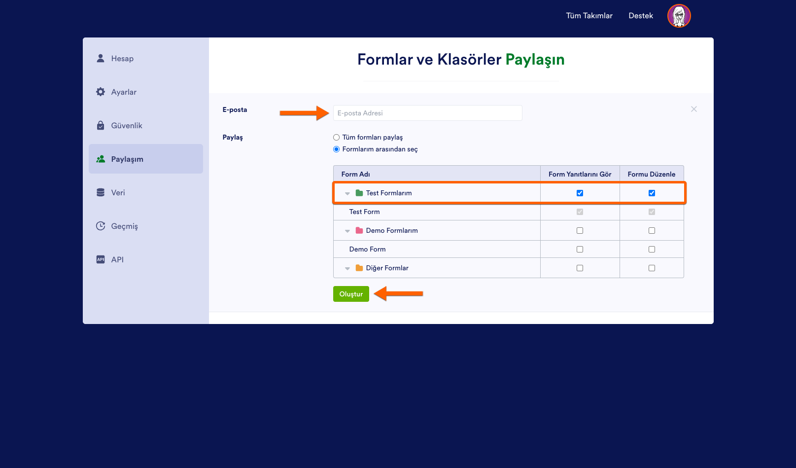 Bireysel Formlara Erişimi Paylaşma