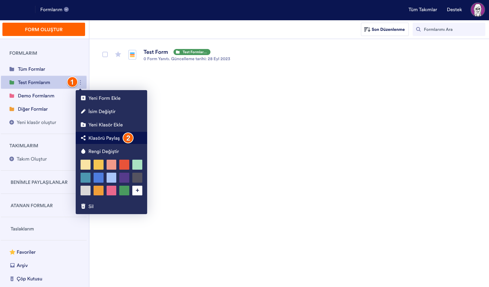 Jotform Kurumsal’da klasörleri hızla paylaşmak için