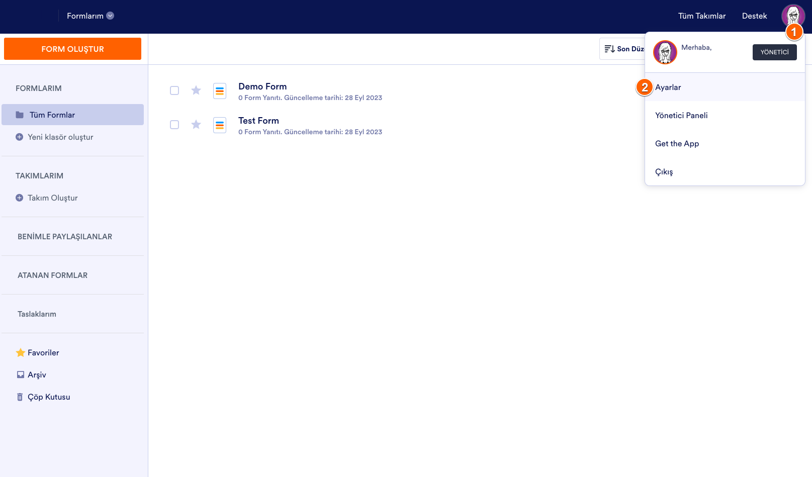 - Bu işlem tamamlandıktan sonra Formlarım kontrol panelinize gidin.
