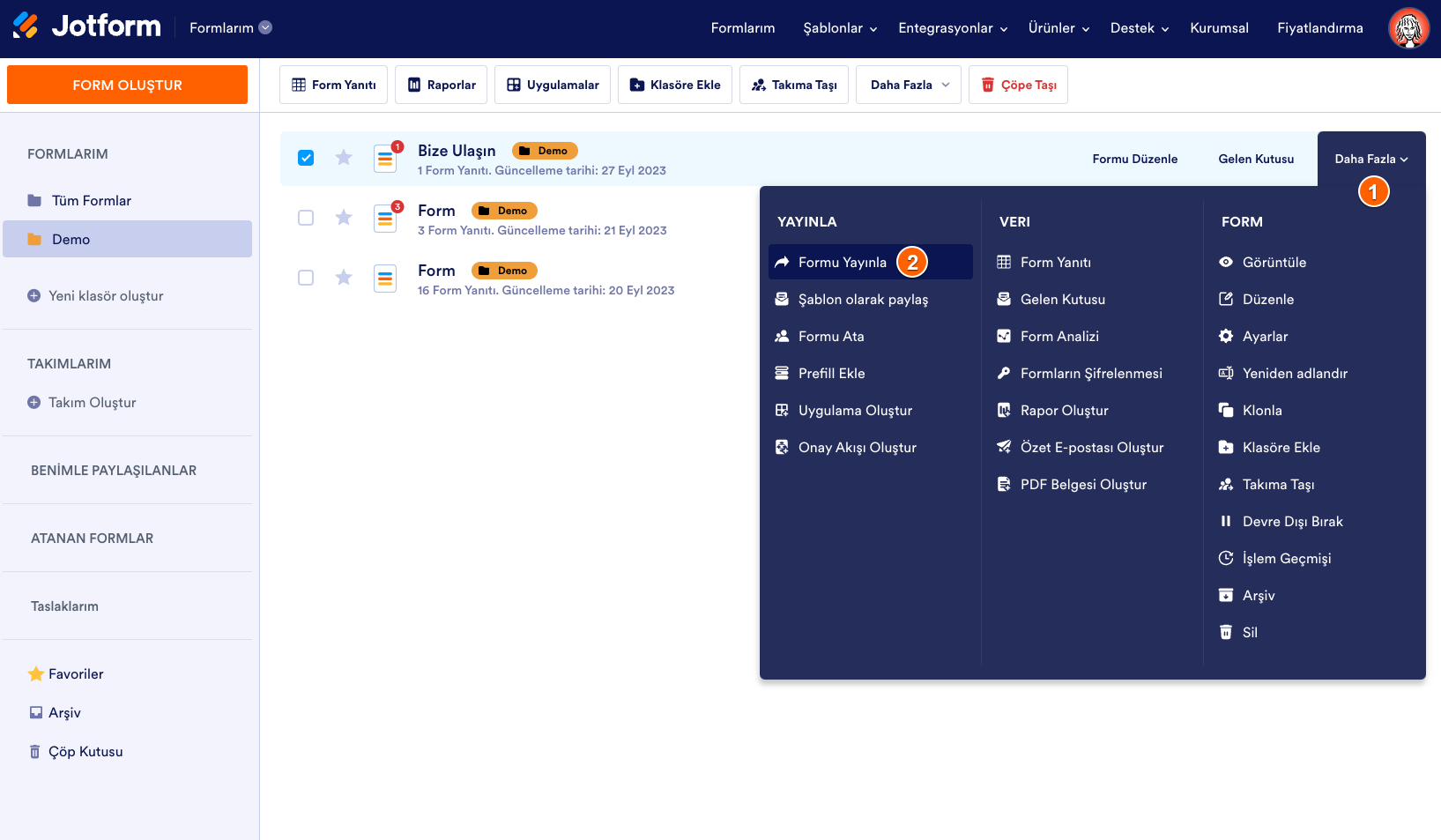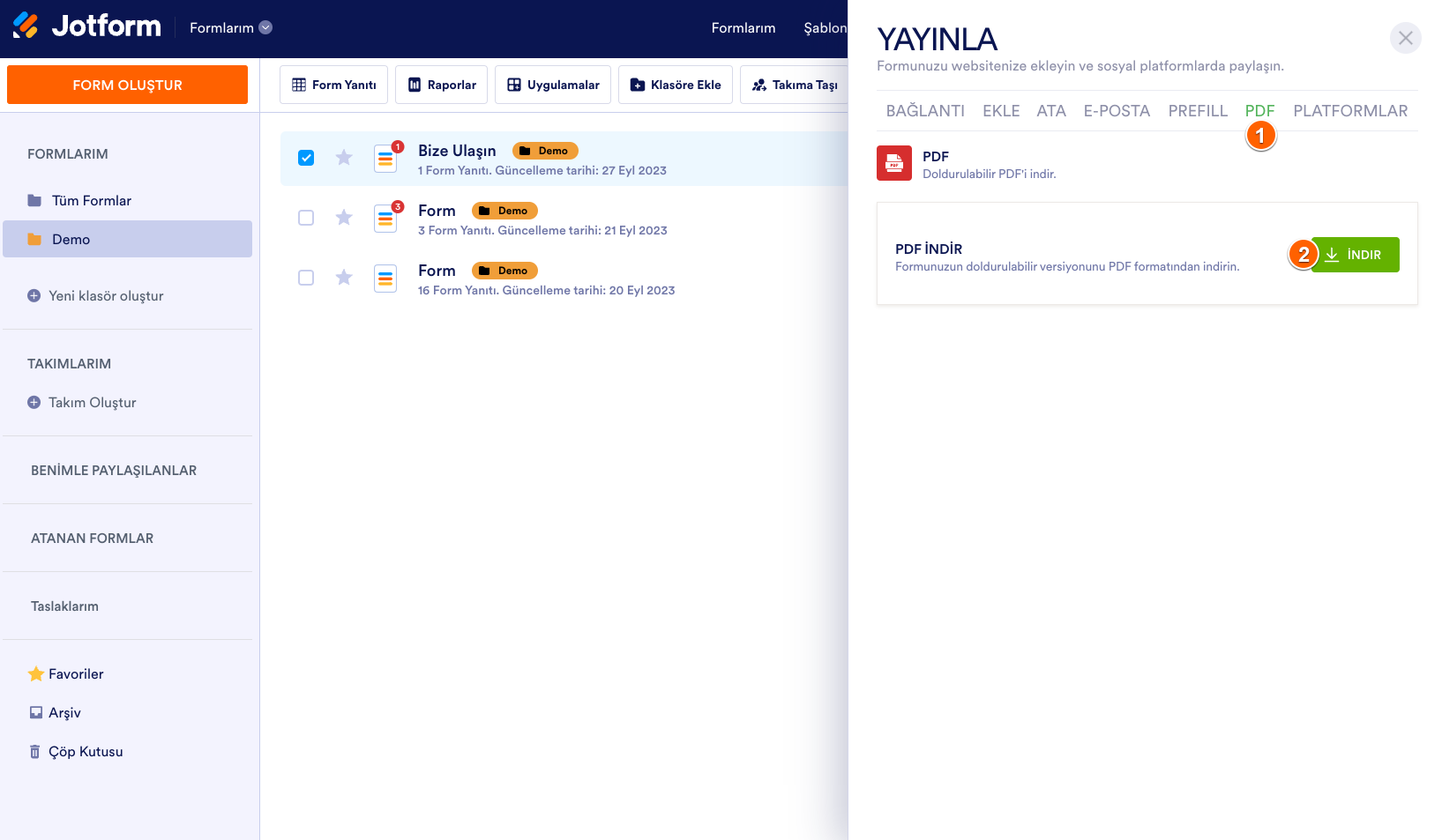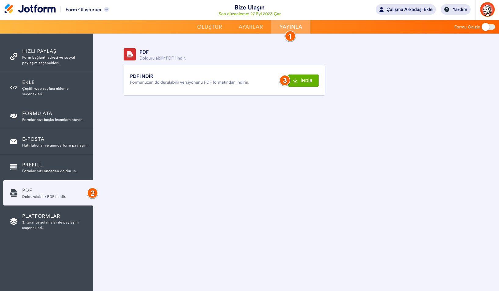 Form Oluşturucu’daysanız PDF’yi indirmek için aşağıdaki adımları izleyebilirsiniz: