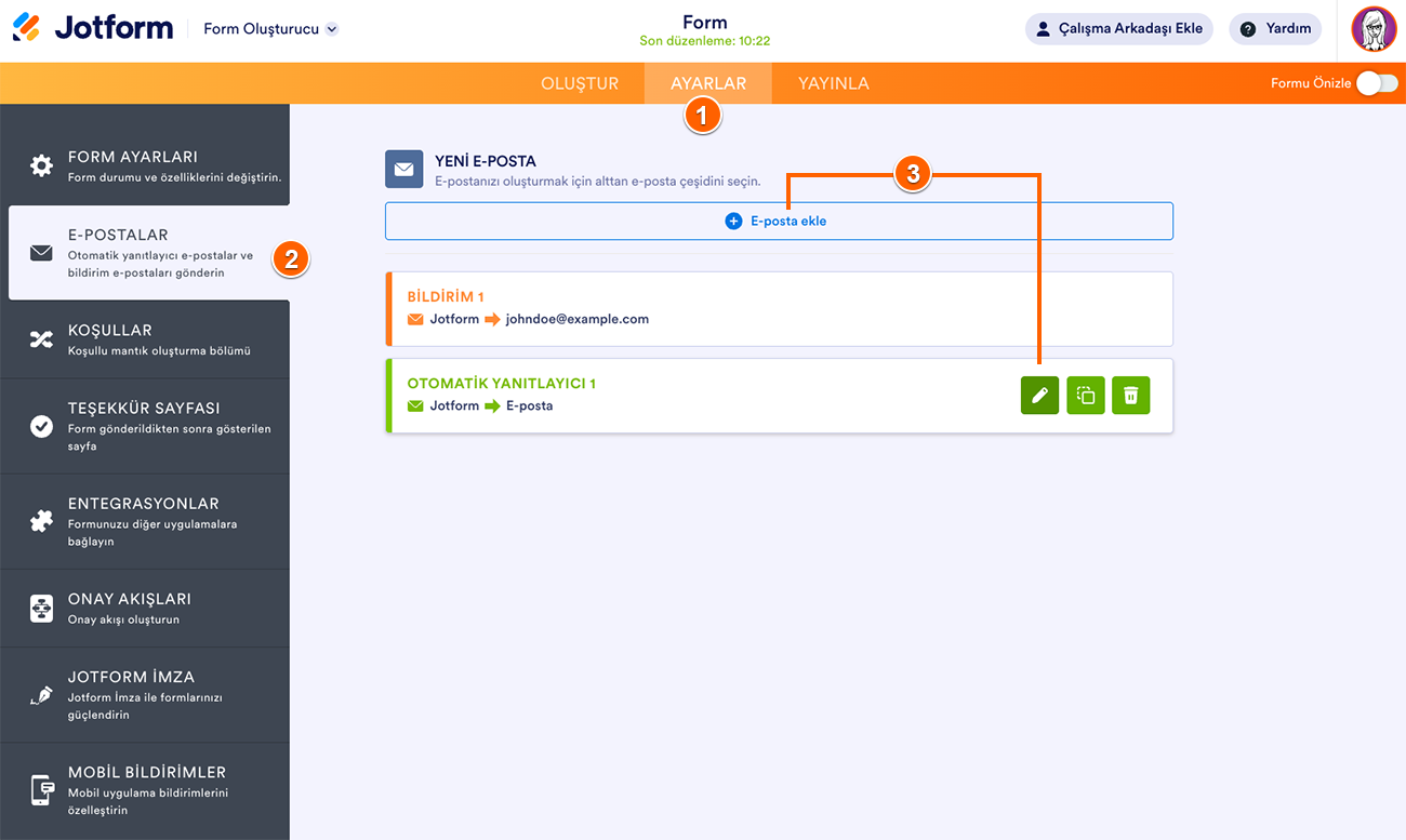 - E-posta İçeriğini Güncelle: Form düzenlendiğinde e-postanın otomatik olarak güncellenmesini sağlar.